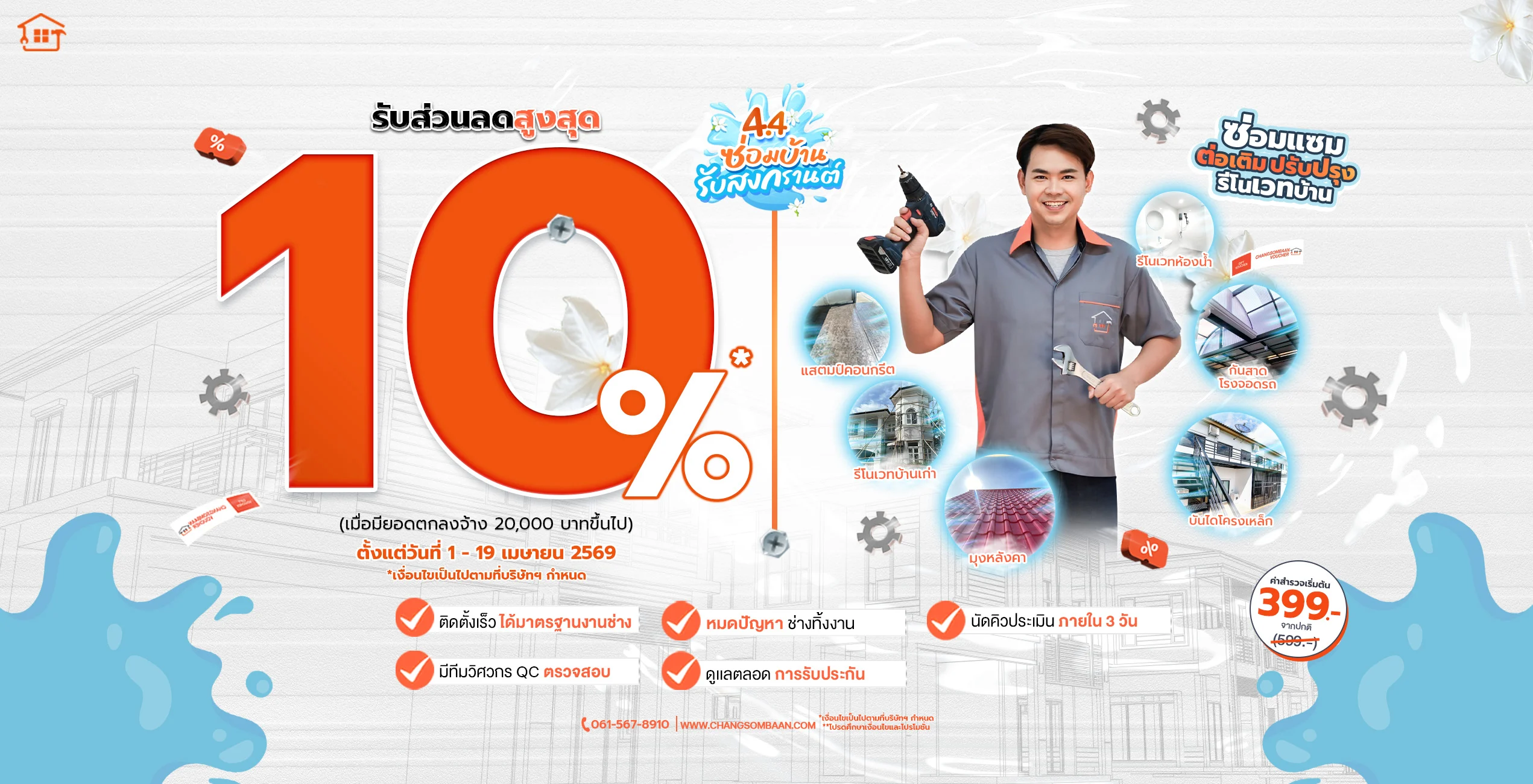 บริการครบจบ เรื่องซ่อมบ้าน รับประกันผลงานสูงสุด 180 วัน