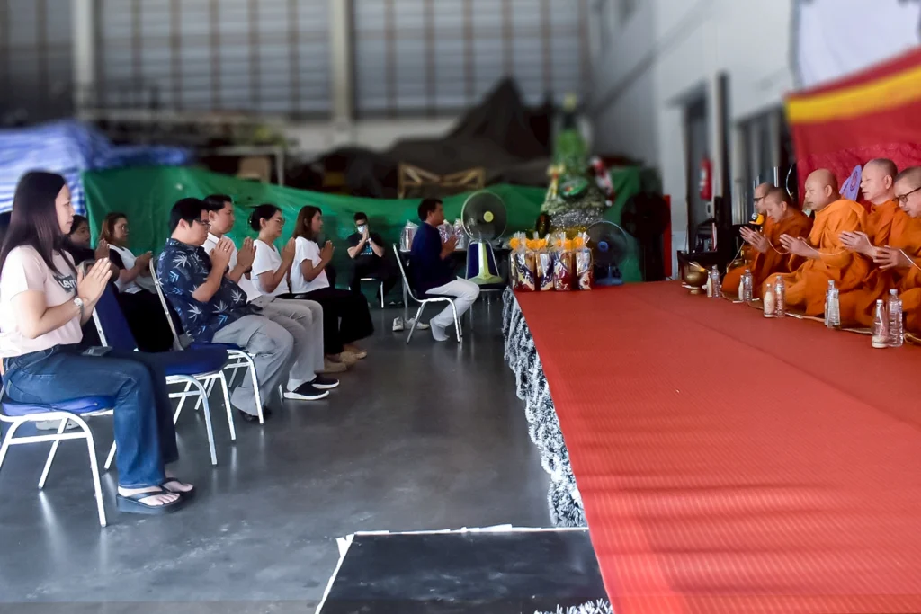 ภายในพิธีได้มีการนิมนต์พระสงฆ์เจริญพระพุทธมนต์ เพื่อความเป็นสิริมงคลแก่บริษัท ผู้บริหาร และพนักงานทุกคน พร้อมทั้งประกอบพิธีถวายภัตตาหารเพลและเครื่องไทยธรรมแด่พระสงฆ์ ตามแบบแผนพิธีทางพระพุทธศาสนา โดยมีผู้บริหารและพนักงานเข้าร่วมพิธีด้วยความสงบ สำรวม และตั้งจิตอธิษฐานให้การดำเนินงานในปีใหม่เป็นไปด้วยความราบรื่น ประสบความสำเร็จ และเจริญก้าวหน้าอย่างยั่งยืน
